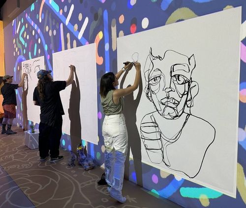 On July 15th we produced our very first Art in Progress event featuring a live painting workshop hosted by Pedro Baez, EfDot, and Parin Heidari. These talented artists will took us on a journey of creation and collaboration, sharing their own unique styles and processes in real time. Afterwards, the audience had the opportunity to create together on a communal canvas. It was an evening of celebrating the act of creation and connecting with fellow art lovers over drinks, with live music by Dotan Negrin. This was the first event in our Art in Progress series, and we look forward to bringing artists and our community together for creative experiences to encourage collective expression.